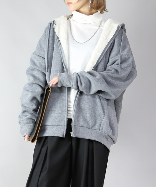 この「史上最強のあったか裏ボアスウェットジップパーカー」は、寒さ対策に最適な一着です。裏ボアと裏起毛の素材が、ふんわりとした暖かさを提供し、冷え性の方にも安心です。 オーバーサイズのデザインは、リラックスした着心地を実現し、スタイリッシュな大人可愛い印象を与えます。 ブラック、杢グレー、ブラウンの3色展開で、さまざまなコーディネートに合わせやすいのも魅力です。 ジップパーカーとして、気軽に羽織れる便利さも兼ね備えています。 Mスタッフが着用してみました。 ◆身長:160cm 着用サイズ:FREE 普段の着用サイズ:M◆ 着丈(最短位置) : 裾位置はヒップ下くらい 身幅 : 大きめ アームホール : 大きめ Lスタッフが着用してみました。 ◆身長:163cm 着用サイズ:FREE 普段の着用サイズ:L◆ 着丈(最短位置) : 裾位置はヒップ下くらい 身幅 : 大きめ アームホール : 大きめ 《便利な機能のご紹介》 ◇商品のお気に入り登録 完売カラーの再入荷通知、ラスト1点の通知、セールの通知を受け取ることができます。 ◇当ショップのお気に入り登録 新商品&再入荷等、イベント等のお得な情報を受け取ることができます。