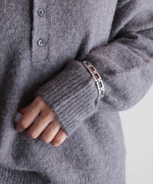 【rapiécage ラピエサージュ】 ・クラシックな雰囲気のブレスレット ・時計のベルトのようなデザイン ・秋冬はニットの上からがオススメ 時計のベルトのようなデザインのブレスレット。 デットストックのパーツを使用した、クラシックな雰囲気のアイテムです。 内径がしっかりとあるため、バングルのようなサイズ感。 手首に直接つけるのはもちろん、シャツやニットなどの袖の上から着けるのもオススメ。 ※rapiécageオリジナル巾着に入れてのお届けになります。 ※商品画像は、光の当たり具合やパソコンなどの閲覧環境により、実際の色味と異なって見える場合がございます。