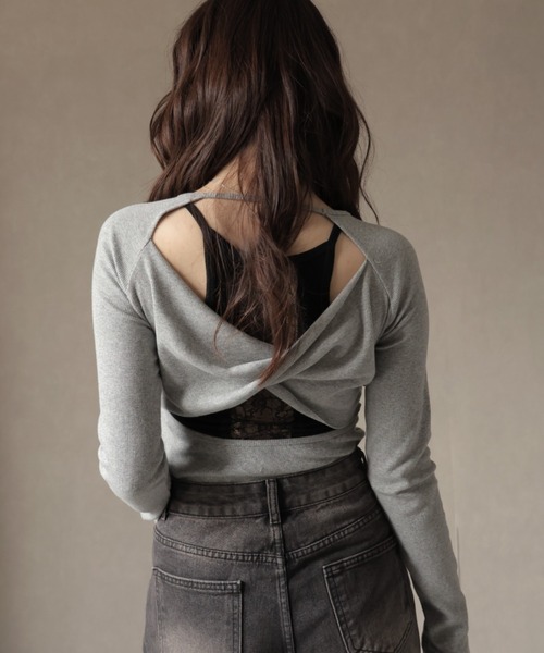 フィット感で女っぽ、バックオープンで抜け感。■デザイン背中に大胆なカッティングを施した、バックオープンデザインのトップス。前から見るとシンプルな印象ながら、後ろ姿でしっかり差がつく主役アイテム。ややフィット感のあるサイズ設計で、女性らしいラインを美しく引き立てます。インナー次第で肌見せのニュアンスを調整できるのも嬉しいポイント。■素材コットン×ポリエステルの混紡素材で、さらりとした肌触りと程よい伸縮性。軽やかでしなやかな風合いが、フィット感を心地よくサポート。ロングシーズン着用できる、扱いやすい素材感です。■スタイリング- デニムやスラックスと合わせて、ヘルシーな肌見せスタイルに。- キャミやレースインナーを差し込んで、レイヤードで遊ぶのも◎。- スカートと合わせて、フェミニンな甘辛ミックスも楽しめます。-----------------------------------------------【お買い物をよりお楽しみいただく為に】▼お気に入り登録サイズ・カラーを指定して、♡マークをクリック![セール通知・ラスト1点の通知・完売アイテムの再入荷通知]を受け取ることができます。▼ブランドのお気に入り登録新商品や再入荷、タイムセールやクーポン等いち早くブランドのお得な情報を受け取ることができます。-----------------------------------------------※取り扱い上のご注意染色の特性上、発汗や摩擦により色落ちしたり他のものに色移りすることがありますのでご注意ください。韓国ファッション オフィスカジュアルガーリー大人カジュアル韓国ファッション秋服冬服