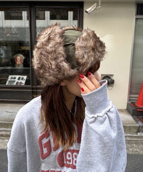 冬のコーデを一気に格上げする、もこもこフライトキャップ▼ポイントもこもこで可愛く、防寒もばっちりなフライトキャップ。ふんわり柔らかなファー素材で、防寒しながらも顔周りを華やかに演出。カジュアルコーデにプラスするだけで、冬のおしゃれをぐっとアップデートしてくれるアイテムです。▼スタイリングボリュームアウターやニットと合わせて、顔周りを華やかに見せるスタイルに。カジュアルなデニムやスニーカーと合わせて、ラフに楽しむ冬コーデもおすすめ。---------------------------------------------------家庭洗濯:不可タンブル乾燥:不可アイロン:不可クリーニング:不可---------------------------------------------------※着用、お取り扱いの際は、商品についている品質表示とアテンションタグを必ずご確認下さい。※画像の商品はサンプルです。実際の商品と仕様、加工、サイズが若干異なる場合がございます。※可能な限り実物に近いカラーにて掲載していますが、撮影環境やモニター環境などにより製品と画像のカラーがやや異なって見える場合もございます。予めご了承ください。【お買いものをよりお楽しみいただく為に!!】▼商品のお気に入り登録(ハートマークをクリック)お気に入りアイテムの完売カラーの再入荷通知や、ラスト1点の通知、セールの通知も受け取ることができます。▼ブランドのお気に入り登録新商品や再入荷、クーポン配布などのお得な情報を受け取ることができます。
