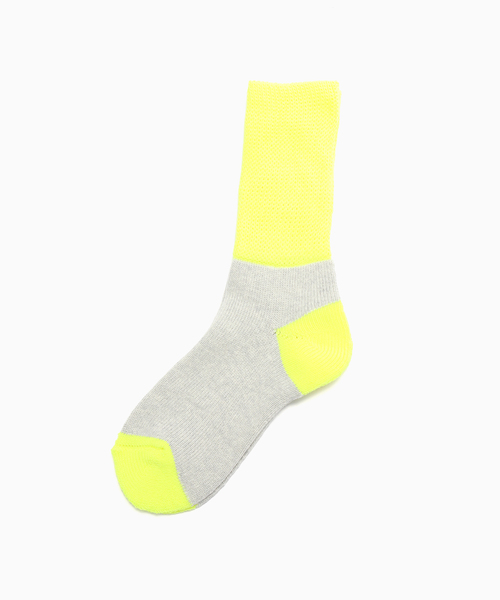 FAB.IT CHUCK Switching表糸を肌触りの柔らかなコットンアクリル混Chuck。NEONの蛍光カラーで編み立て、Switching(切り替え)のアクセントが光るソックス。鮮やかなネオンカラーが、コーディネイトにポイントを与えてくれます。Chuck (チャック)履き口のリブを長めにとり、ガーゼのように柔らかく目の粗い特殊な編み地により締め付けを抑え、長時間履いていても痕が残らず、ずれ落ちない特徴を持っています。カカトを立体的に編むことによりホールド感が増し、タオルのような肉厚でボリュームのあるパイル編みをふんだんに使いクッション性を向上しています。<使用について>・ 糸が飛び出てきた際は、無地に引っ張らず5mmほど残しカット、または内側にしまい込んで下さい。・洗濯機をご使用の際は裏返しにして洗濯ネットの使用をおすすめします。・ 口ゴム部分を上にしては干ししてください。・ 塩素系漂白剤は使用しないでください。【FAB.IT / ファブイット】FAB.IT(ファブイット)は、デザインと機能の調和を考え、医療・スポーツ系ソックスの技術を駆使して履き心地を追求した日本製のソックスブランド。《画像についてのご注意》※照明の関係により、実際よりも色味が違って見える場合があります。またパソコン・スマートフォンなどの環境により、若干製品と画像のカラーが異なる場合もございます。※商品の色味は、商品アップ画像をご参照ください。《商品のお気に入り登録について》「カートに入れる」または「予約する」右側のハートマークを押していただくと、再入荷、残り1点、セールなどの通知を受け取ることが出来ます。