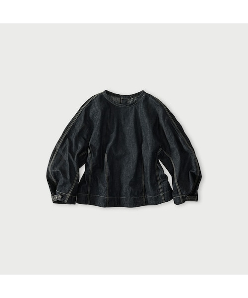 サクッと香ばしいデニムライ麦よりもっと軽い、麦比古はドライタッチのライトオンスデニム。凹凸感と濃淡はそのままに、焼きたてパンのような軽やかな着心地を実現しました。まるいかたちから生まれたパフっとした袖が女の子らしい立体的なブラウスです。