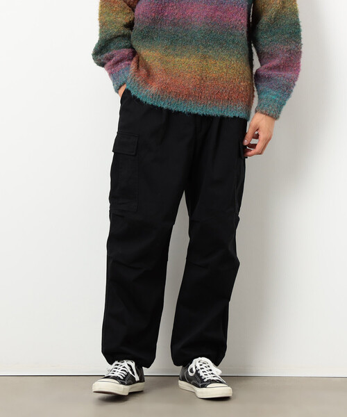 《デザイン》定番人気のツイルワイドカーゴパンツです。両脇の大型ポケット、股上深め、膝部分にタック、腰回りにゆとり、裾はスピンドルで絞る仕様など、ヴィンテージのカーゴパンツのシルエットや仕様を参考に今のトレンドに合うスタイリングしやすいシルエットにしています。ウエストはゴムとドローコードの仕様になっているので、タックインや腰穿きなどスタイリングに合わせて腰位置の調節ができます。毎日のコーディネートに大活躍な合わせやすいカーキ、ブラックと今年のトレンドカラーのブラウンの3色展開です。《素材》コットンツイル綿100%のカジュアルにもキレイめにも適したツイル素材です。一年を通して使っていただける程良い厚みの素材です。穿きこむほどに柔らかくなり、身体に馴染んできます。透け感:無し厚さ:普通伸縮性:無し光沢感:無し