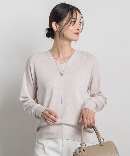 【デザイン】毎シーズン人気のBrisbaneシリーズから登場したVネックプルオーバー。シンプルながらもデコルテをすっきりと見せるVネックラインが女性らしい印象を演出します。体に沿いすぎない適度なシルエットで、1枚着としてもインナーとしても着回ししやすいアイテムです。【素材】ソフトで毛羽の少ない最高級メリノスーパーファインウールを使用。しなやかで軽やかな肌触りに加え、天然の光沢感が上品さを引き立てます。透け感が少なく適度な厚みがあり、伸縮性・通気性・保湿性に優れているため、ストレスフリーな着心地。ごく限られたオーストラリア産の17.5マイクロン極細原料を使用した、ラグジュアリーな素材です。----------------------------------------------------------------洗濯方法家庭洗濯:液温は40℃を限度とし、手洗いができる。自然乾燥:日陰の平干しがよい。アイロン:底面温度160℃を限度としてアイロン仕上げができる。ドライクリーニング:石油系溶剤による弱いドライクリーニングができる。----------------------------------------------------------------■モデル身長 165cm/着用サイズ 9号※商品タグに記載されたサイズはヌードサイズです。実際の商品のサイズは商品情報の実寸をご確認ください。※画像の商品はサンプルとなりますので実際の商品と仕様、加工、サイズが若干異なる場合がございます。※お客様のモニター環境により実際のお色と多少異なる場合がございます。※撮影状況や光の当たり具合により、色合いが異なって見える場合がございます。----------------------------------▼商品のお気に入り登録ハートマークをクリックし、お好きなカラーを選んでお気に入りに登録完売カラーの再入荷通知や、ラスト1点の通知、セールの通知も受け取ることができます。▼ブランドのお気に入り登録新商品や再入荷等、いち早くブランドのお得な情報を受け取ることができます。----------------------------------