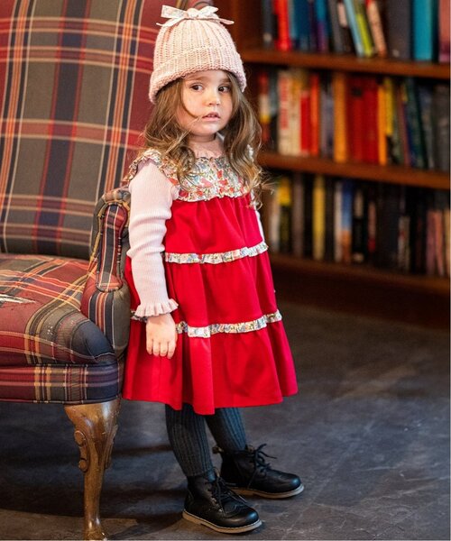 リバティファブリックスをヨークとフリル部分に使用したジャンパースカートです。かわいらしいティアードデザインと、上品な小花柄がポイント。背面はボタン明き仕様のため、お着替えも簡単です。合わせるインナーを変えることでロングシーズン着用できます。内側にお名前を記入できるタグつき。【おすすめの着用時期は秋冬シーズン】【透け感】透けない【生地の厚さ】普通【伸縮性】あり【裏地】なし【ポケット】なし