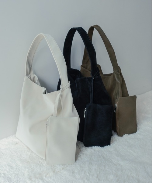 【on:nue】 ミニポーチ付きスエードライクトートバッグ SUEDE-LIKE TOTE BAG WITH MINI POUCH ■Point スエードライクのほんのり光沢があるマット素材 大容量でたっぷり収納可能 内側に便利なポケット付き ミニポーチがセットで使い勝手抜群 **ミニポーチはお取り外し不可です。 ■Design 肌触りが良く上品なマット素材でほんのり光沢を帯びた スエードライク調の質感が特徴です。 大容量の収納スペースを備えつつ、内ポケットが設置されていて、 小物の整理がしやすく実用性も抜群。 付属のミニポーチはバッグのアクセントとしてお楽しみ頂けます。 荷物を小分けにでき日常使いからお出かけまで幅広く活躍します。 肩掛けと手持ちの2WAYで使いやすく、カジュアルから きれいめまでどんなコーディネートにも馴染みます。 *ご覧のモニター環境や撮影環境に応じて実際 商品の色と異なって見える場合がございますので、ご了承下さい。 *素材の特性を考慮して管理法留意事項を購入/着用する場合は必ず 確認お願いします。 ※当社の製品は、工場で生地を染色する際、同じ釜・同時期に染色されたものは同じ色に仕上がります。釜や染色日が異なる場合、生地の色味に微妙な差が生じることがございます。 また、生地の染色においては、基本的に同じ染料を使い、同じ条件で作業を行いますが、染料の配合や、その時の温度、湿度、染色量など、様々な要因により、わずかな色ブレが発生する可能性がございます。 そのため、リピート購入や複数点のご購入をご検討されるお客様におかれましては、多少の色味の差が生じる可能性があることをあらかじめご理解いただいた上で、ご購入いただけますようお願い申し上げます。 【 on:nue 】 「年を重ねてもおしゃれを楽しみたい大人の女性へ、抜け感のある韓国モードをさりげなく取り入れた上質で長く着られる服」 を コンセプトに韓国大人女子コーデが叶うアイテムをお届けする by muni:rの姉妹ブランドです。 ■商品お気に入り登録 [お気に入り登録] を押すと登録完了! お好きなアイテムとサイズのカラーを登録すると再入荷、販売のお知らせ等を受け取れます。 ■ブランドお気に入り登録 新商品/お買い得情報/クーポン等の通知をいち早く受け取れます。 ブランドの最新情報はinstagram[@onnue_official]でご確認頂けます。 *注文履歴ページよりご注文頂いた商品の配送時間を確認できます。 *他のキャンペーンにより、価格が変わる場合があります。