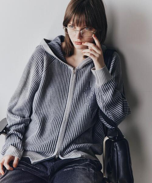 【素材】 膨らみ感のあるアクリル糸を使用しています。 ゲージ:7GG 表と裏の糸を配色にしたストライプ柄が特徴です。 【デザイン】 今シーズントレンドのジップニットパーカー。 表と裏で糸の色を変えることで表現した深みがある色が特徴です 胸にはトレンドの光のモチーフを編みで表現しました。 オーバーサイズながら、着丈は短く、裄丈を長く設計した今シーズンらしいシルエットに仕上げています。 デニムからスラックスまで幅広いボトムに合わせていただけます。 【推奨サイズ】 02サイズ(M):165~175cm 03サイズ(L):170~180cm ※標準体型を基にした目安になります。 - BRAND CONCEPT - 時代を超えて支持されるトラディショナルなアイテムをベースに、アソビ心とストリートの自由な発想を取り入れ、日本独自のミックススタイルを提案します。 【気になる商品はお気に入り登録をおススメ】 ▼商品のお気に入り登録 完売しているカラーの再入荷通知や、ラスト1点、セールの通知をお知らせいたします。 ▼ブランドのお気に入り登録 新商品や再入荷など、いち早くブランドの情報を受け取ることができます。 ※照明の関係により、実際よりも色味が違って見える場合があります。また、パソコン・スマートフォンなどの環境により、若干製品と画像のカラーが異なる場合もございます。 モデル情報:身長180cm B86 W69 H93 着用サイズ:03(L) 店舗へのお問い合わせ商品番号:170-14112 ●製品寸法: 02(M):着丈61cm B108cm 裄丈83cm 03(L):着丈63cm B112cm 裄丈85cm 備考: