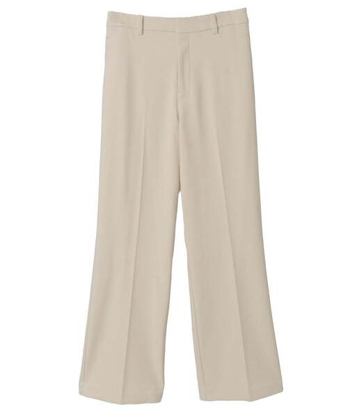 後ろゴム仕様で楽ちん、セミフレアシルエットが美しいパンツ ジョーゼット素材の上品な表情感に加え、裏起毛でしっかりあたたかく、冬でも快適に過ごせます。 さらにストレッチ入りで動きやすさも抜群。 東レのソフトサーモ使用で発熱・保温・ソフトタッチの機能性も◎。 暖かさとキレイ見えを両立した、冬のデイリーボトムにぴったりの一本です。 ■fabric 東レのソフトサーモを使用しており、発熱・保温・ソフトタッチが特徴です。 ジョーゼット組織の程よい表情感で上品さもありつつ、裏起毛で暖かさもある素材。