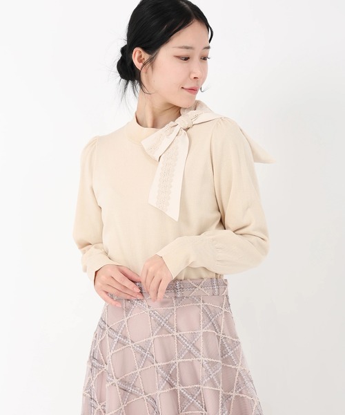 *エリシアストレッチシーズンレスで着られるさらりとした糸を使用したベーシックなカタチのニットをベースに、サイドネックに結ばれたレース付きタフタリボンが、顔周りをクラシカルに演出してくれるデザインネックトップス。程よくゆとりのある身頃とギャザースリーブで、身体のラインを気にせず上品なスタイルを叶えます。フロッキーレースプリントのスカートと合わせると、リボンにあしらったレースとスカートのレース柄がリンクしたかの様なムードのスタイリングが完成します。洗濯:洗濯機使用可能(ネット使用)《お気に入り登録》はお得がいっぱい!「商品」のお気に入り登録で、再入荷、ラスト1点、セールなどお得な通知を受け取ることができます。「ブランド」のお気に入り登録で、新商品や再入荷などいち早くブランドの情報を受け取ることができます。是非、この機会にご登録くださいませ。