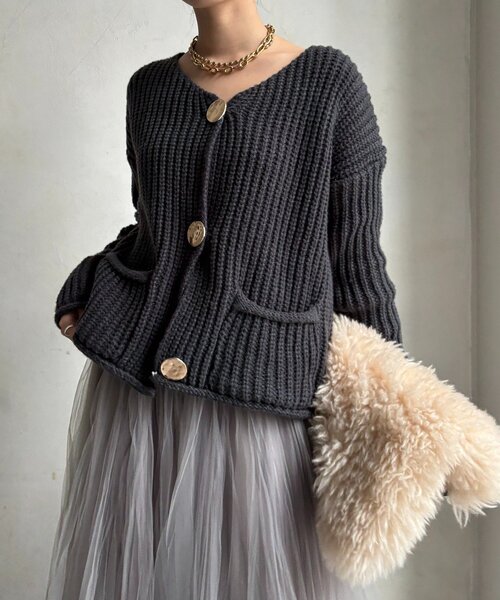 ■2025 AUTUMN & WINTER ITEM■大きめボタンが映える洗練ニットカーデ大きめのメタルボタンが印象的な、存在感たっぷりのローゲージカーディガン。シンプルながらもディテールにこだわったデザインで、羽織るだけでコーディネートに洗練されたムードを添えてくれる一着です。ゆるめのシルエットが自然な抜け感を演出し、女性らしさとこなれ感を両立させてくれます!深めのVネックラインは、顔まわりをすっきりと見せてくれるのも嬉しいポイント- POINT -・存在感のあるメタルボタン・羽織るだけで洒落見え・立体感あるローゲージ--------------------------------洗濯:手洗い可能透け感: なし裏地: なし伸縮性: あり光沢感: なし--------------------------------【 ♡ をクリックでお得な情報をお知らせいたします 】〈 商品のお気に入り登録 〉 お気に入りアイテムのお値下げ・再入荷・在庫ラスト1点など通知を受けることができます。〈 ブランドのお気に入り登録 〉DOUDOUの新商品や再入荷、セール、クーポン配布などお得な情報を受けることができます。--------------------------------------※ 生産の都合上、お届け時期が前後する場合がございます。※ 掲載画像の商品の色味は、 撮影場所や光の当たり具合などにより色味が異なって見える場合がございます。 また、お客様のお使いのPC・スマートフォン等のモニター環境などにより色味が異なって見える場合がございます。予めご了承の上ご注文ください。 ※ 着用、お取り扱いの際は、商品についている品質表示とアテンションタグを必ずご確認下さい。
