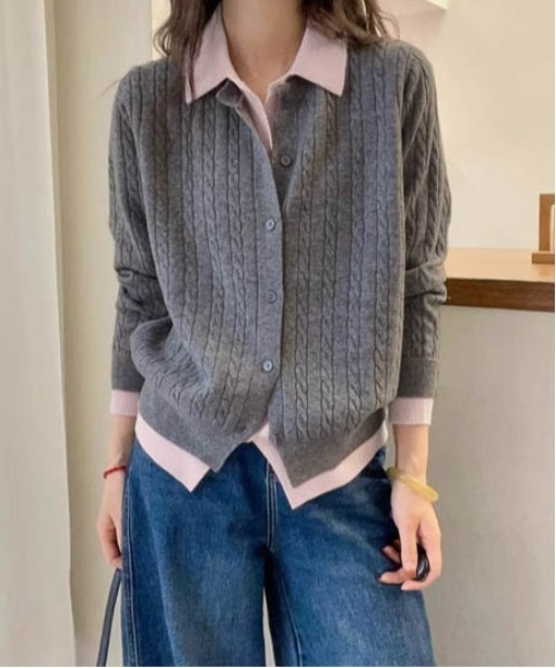 着るだけでコーデ完成 レイヤード風で着映える1枚 重ね着しているように見えるデザインが魅力のニットトップス。 襟、袖口、裾にポロニットを合わせたようなディテールあしらい、 シンプルながらも1枚でこなれたスタイルを演出します。 トレンドライクな 配色デザイン ニットを重ねたような 立体的なシルエットと配色が コーデのアクセントに。 1枚で即コーデが完成し、 こなれた印象を演出してくれる 主役級アイテムです。 着こなし自由自在 カーディガンデザインを採用し、 前を閉じても、開けてもサマになる◎ お好みの着こなしが楽しめる アイテムです。 【25AW】 ■Fabric 柔らかく肌触りの良い ニット生地 ケーブル編み風のデザインが施された生地 --------------- 透け感:なし 裏地:なし 厚さ:普通 伸縮性:あり --------------- ▼《お気に入り登録》でお得な情報がいっぱい▼ ・「商品のお気に入り登録」で再入荷通知や、ラストの通知、セール通知も受け取ることができます。 ・「ブランドのお気に入り登録」で新商品や再入荷など、お得な情報を受け取ることができます!