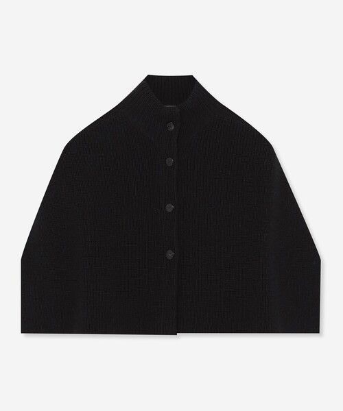 片畦編みのハイネックのニットケープです。イタリアの紡績メーカー「Zegna Baruffa-ゼニア バルファー」社の素材です。厳選されたウールを使用した、柔らかさ・ふくらみ・光沢が特徴です。シャツ、ニット、ワンピースの上に重ねたり、同素材のプルオーバー(品番:G5N40626)にアンサンブルとして重ねてもお洒落に暖かくご着用頂けます。Mマーク入のメタル釦がアクセント。クラッシックな雰囲気できちんと感がありカーディガン代わりに便利にお使いいただける新しいアイテムです。