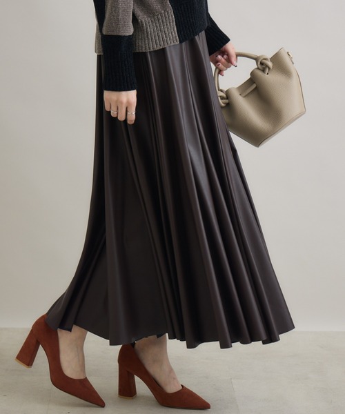 華やかさを添える上質エコレザースカート<POINT>たっぷりと広がるドラマティックなフレアシルエット。柔らかくしなやかなエコレザーの上質感。シンプルなのに華やか、洗練された存在感。【デザイン・シルエット】歩くたびに揺れる、贅沢に生地を使用したサーキュラーデザイン。エコレザー特有のハリ感と落ち感が美しいドレープを生み、どの角度から見ても優雅な印象に。ウエスト部分は総ゴム仕様で、フィットしながらも締め付け感のない設計。体型を選ばずに着こなせ、トップスインもアウトもすっきり決まる万能デザイン。【素材感】ポリウレタン100%のエコレザー素材を使用。ほんのりとした光沢感が高級感を漂わせ、伸縮性のあるなめらかな手触りが魅力。【カラー】ブラック ベージュ ブラウン 3色展開【スタイリング】ざっくりニットを合わせて、抜け感のある大人フェミニンスタイルに。オーバーサイズのジャケットを羽織って、シルエットにメリハリをつけた都会的コーデに。裏地:なし光沢:あり伸縮性:あり透け感:なし生地の厚さ:普通ポケット:なし【TRANOI.】Fukuoka japan / Women’s wear brand.虎の衣(威)を狩る狐 トラノイ。ありそうでなかった衣で毎日新しい自分に!※照明の都合上、多少の色ブレが生じてしまう可能性がございますので、予めご了承くださいますようお願い致します。---------------------------------------------------●お気に入り登録でお得情報を手に入れよう!「商品のお気に入り登録」をすると、再入荷通知や、ラスト1点の通知、セールの通知など、お得情報が届きます。また、マイページでいつでも確認が可能になります。「ブランドのお気に入り登録」をすると、新商品や再入荷、などいち早くブランドの最新情報をお届けします。ぜひ、ご利用ください。----------------------------------------------------