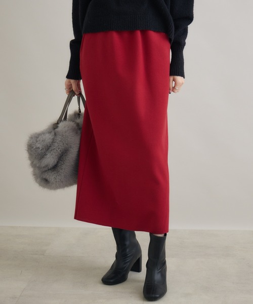 ラクしてきれいが叶う、ストレスフリーな万能スカート<POINT>ウーリージャージ素材で動きやすくストレスフリーな着心地。上品なIラインシルエットで、スタイルアップ効果抜群。手洗い可能でお手入れ簡単、デイリーに活躍。【デザイン・シルエット】スタイルを美しく引き立てるIラインシルエットが特徴のスカート。後ろスリットが軽やかな足さばきを叶え、動くたびに上品な印象を演出。ウエストは総ゴム仕様で、着脱がスムーズなうえ、体型に優しくフィットします。さらに便利なポケット付きで、実用性もしっかり確保。【素材感】ポリエステ、アクリル、レーヨンを絶妙にブレンドしたウーリージャージ素材を使用。軽くて柔らかく、伸縮性にも優れているため、一日中着てもストレスフリー。見た目はきちんと感がありながら、着心地はスウェットのような快適さ。【カラー】ブラック ベージュ レッド 3色展開【スタイリング】オーバーサイズのシャツを合わせて、抜け感のある大人カジュアルに。ジャケット+ヒールできちんと感を演出し、オフィスでも好印象に。裏地:なし光沢:なし伸縮性:あり透け感:なし生地の厚さ:普通ポケット:あり【Dignite Collier】30代のリアルクローズを実感していただくために生まれたブランドです。SWEET x COOL CASUAL x MANNISH AGELESS SEASONLESSなど常識にとらわれない、私が着て、私らしく、私が好きになれる服。そんなアイテムを提案します。※照明の都合上、多少の色ブレが生じてしまう可能性がございますので、予めご了承くださいますようお願い致します。---------------------------------------------------●お気に入り登録でお得情報を手に入れよう!「商品のお気に入り登録」をすると、再入荷通知や、ラスト1点の通知、セールの通知など、お得情報が届きます。また、マイページでいつでも確認が可能になります。「ブランドのお気に入り登録」をすると、新商品や再入荷、などいち早くブランドの最新情報をお届けします。ぜひ、ご利用ください。----------------------------------------------------
