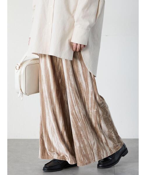 クラッシュベロアが表情豊かな印象を与えるパンツ。すとんとしたストレートシルエットで、気になる体型もカバーできます。ゴム仕様のウエストがラクな穿き心地を実現。どんなトップスにも合わせやすく、着回しの幅が広がるアイテムです。※商品画像は、撮影環境やお客様のご利用のPC・スマートフォンのモニター環境などにより実物と色味に差異がある場合がございます。【その他採寸】F ウエスト:[ゴム仕様]66cm ★《お気に入り登録》でお得な情報をGET★① 商品ページ内のハートマークをクリック!② 以下通知が受け取れます!「再入荷」「ラスト1点」「特別セール」etc..\ブランド、ショップのお気に入りも是非!/