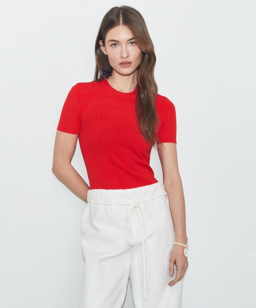 Tモノグラムジャガードで編んだセーター。スリムフィットのクロップドシルエット。お揃いのカーディガンと合わせれば、セットアップとして着こなすことができます。 ・レーヨン79%、ポリエステル21% ・ネックライン背面に“Tory Burch”の刺繍を施したロッカーループ ・サイズ2/XS/26:身丈52.5cm ゆき丈37.5cm ・ドライクリーニングしてください