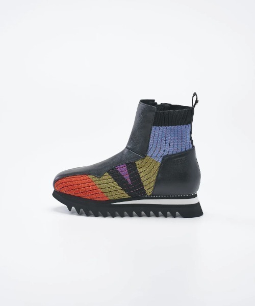 VEGE Hexagon 履くだけで心が弾む、足元に特別な彩りが宿る新作ブーツ ■パッチワーク風のデザインで、暗くなりがちな秋冬コーデのアクセントにピッタリ。 ■ニット×レザーの組み合わせで足元を新鮮に映えさせます。 ■ニット素材なので、幅広の方でも安心の履きやすさ。 ■ヒールが4cmと程よい高さでスタイルアップ効果も。 ■低反発のインソールは弾むような履き心地でやみつきに。 ■内側ジップで着脱も楽ちんで実用的。 ■ソールはVibramソールを使用、高いグリップ力と優れた耐久性で安心の1足。 VEGEで不動の人気スニーカー【Cheerio】から派生した新作ブーツ。 足を入れた瞬間に感じる気持ち良さ。 つい走り出したくなるような履き心地に感動します。 異素材使いやカラーリングもVEGEならでは。 どこで買ったの?と聞かれるほど、デザイン感溢れるブーツ、ぜひお試しください! ※商品を受け取ってから8日以上が経った商品、ブランドタグや梱包を失くされた商品、また、着用感が見られる商品は返品交換を受け付けられないことがございます。予めご了承くださいませ。 【 VEGE/ベジ 】 素材へのこだわり、鮮やかなイロドリ、大地に還るサスティナビリィ、ヘルシーでフレッシュ それはまるで野菜。 野菜"Vegetables"からVEGEと名付けました。 人にも環境にも優しいものづくりを軸に、今の時代を駆け抜ける女性の為に 野菜=VEGEから得られるエネルギーで、より輝く人生を歩いてほしい。 そんな想いをこめ、VEGE は 2020 年サスティナブルを意識したブランドとして立ち上がりました。 私たちがすべき事は、生産背景と環境に配慮し負荷を最小限に抑える事。 生産者が無理なくきちんとしたモノづくりを出来る環境を整える。 高品質な商品を作る事で、使い捨てではなく長く使用してもらえるものを作り上げる。 リサイクル素材は率先して使用する。 当たり前の様で当たり前に出来なかった事を私たちは改めて見直し、常に改善し続ける。