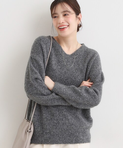 【デザイン】ふんわりとした肌ざわりが心地よい、シンプルなVネックニットです。Vネックが首元をすっきり見せてくれて、抜け感のある印象になります。ドロップショルダーでリラックス感があり、程よいゆとりのあるシルエットです。【スタイリング】デニムやワイドパンツと合わせるだけで、大人カジュアルな着こなしができ、シャツやタートルをレイヤードしてもバランスよく決まり、着回ししやすいアイテムです。シンプルデザインですのでナロースカートやフレアスカートなどにも合わせていただけます。【素材】柔らかくふわふわ感が特徴的な素材を使用しています。※照明の関係により、実際よりも色味が違って見える場合があります。また、パソコン・スマートフォンなどの環境により、若干製品と画像のカラーが異なる場合もございます。モデル情報:身長165cm B82 W60 H88 着用サイズ:02(M)店舗へのお問い合わせ商品番号:741-14022●製品寸法:01(S):着丈60cm B114cm 袖丈45cm 肩幅52cm02(M):着丈61cm B119cm 袖丈46cm 肩幅54cm03(L):着丈63cm B124cm 袖丈47cm 肩幅56cm04(LL):着丈65cm B130cm 袖丈48cm 肩幅59cm備考: