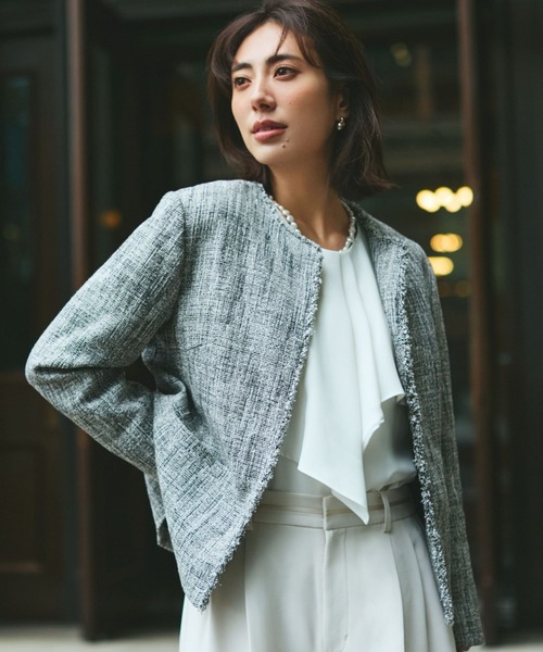 \ ハレの日は間違いない選択!王道ツイード/【悩みに“効く”ポイント】キチンと感のある王道スタイルが、この一着で完璧に決まります。 卒業・入学式に安心感を与えます。コンパクトなパターン設計で、身体のラインをきれいにスッキリと見せる着痩せ効果あります。 クルーネックが顔回りにキチンと感をプラス。ハレの日が終わっても、まだ主役。 オフィススタイルにも活躍できる賢いアイテムです。コンパクトなサイズ感で、 スカートと合わせたバランスが抜群です。【MATERIAL & FUNCTION】表情豊かなツイード素材が、 顔回りを明るく華やかな印象に見せてくれます。 裏地付きで滑りが良く、着心地も快適です。[素材] 表地 綿50% / ポリエステル46% 他 裏地 ポリエステル100%【スタイリング】セレモニーに:華やかブラウスをインすると、 更に明るく清潔感がアップする王道スタイルに。オフィスに:スッキリとしたスカートやパンツと合わせ、 品格のあるオフィススタイルに。<シーンに合わせて着回し自在>おすすめシーン:入園・入学式、卒園・卒業式、通勤、セレモニー、フォーマル、お呼ばれ、学校行事、オケージョン【商品の取り扱いについて】お手入れはドライクリーニングをご利用ください。 デリケートな素材のため、引っ掛かりにご注意ください。------------------------【お気に入り登録のおすすめ】■商品のお気に入り(♡)登録┗完売カラーの再入荷通知や、完売間近の通知、ZOZO店のみのセールなどの通知を受けることができます。■ショップのお気に入り(♡)登録┗新商品や再入荷など、いち早くブランドのお得な情報を受け取ることができます。------------------------