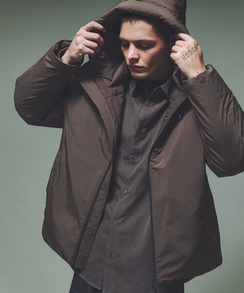 高機能にアップデートした都会的なボリュームダウン【素材】イタリアの老舗生地メーカーLIMONTA社の高機能ポリエステル素材を使用。軽さとソフトな質感、光沢感を抑えた表面感で落ち着いた印象。撥水・防風・透湿・花粉防止などをもつ高機能素材です。ダウン80%・フェザー20%の700フィルパワーダウンを使用し、暖かさも◎。【デザイン】ダウン特有の横段を作らず、すっきりと仕上げたクリーンなダウンブルゾン。肘回りにはアクションプリーツが入り、丸みのある立体感が特徴的。フードもしっかりとしたボリュームがあり、首回りはスタイリッシュな出で立ち。裾にはスピンドルが付き、シルエット変化も楽しめます。シンプルながら胸のファスナーポケットやフードのスピンドルでアクセントを。ダブルジップ仕様で着こなしの幅も広がります。【コーディネート】防寒性に優れ、ボリューム感がしっかりとあるダウンブルゾン。ミニマルな雰囲気なため、カジュアルなアイテムと合わせても全体のバランスがとりやすいブルゾン。ややオーバーサイズで重ね着のしやすさも。**********************透け感:なし裏地:なし伸縮性:あり光沢感:なし生地の厚さ:普通**********************