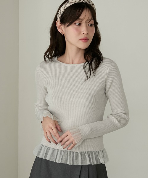 袖と裾のフリルがさりげなく華やかさを演出 デイリーにも特別な日にも活躍する『シアーフリルラメリブニットプルオーバー』 ■POINT ・シアーフリルが華やかさを添えるリブニットプルオーバー ・袖口と裾のプリーツフリルで女性らしい動きと軽やかさをプラス ・控えめに煌めくラメ素材が主役級の1枚 ・やや広めのネックラインで鎖骨を美しく見せ、上品な印象に ・細かいリブ編みで体に程よく沿い、すっきりとしたシルエット ・デイリーからオフィス、ちょっとしたお出かけまで幅広く活躍 ・シンプルなボトムスと合わせるだけで完成する、着回し力の高いアイテム ---------- 透け感…なし 伸縮性…あり 光沢感…ラメ部分あり 生地の厚さ…普通 洗濯方法…手洗い可能 ---------- ■取り扱い方法 押し洗いしてください。 長時間水に漬けておいたり、濡れたまま放置しないでください。 つけ置き洗いはお避けください。 形を整えて干して下さい。 アイロンは当て布を使用してください。 クリーニングの際はネットを使用してください。 ※ご覧になっているデバイスやモニター環境によって、実際の色味と多少異なって見える場合がございますので予めご了承をお願い致します。 ■スタッフ着用レビュー ◇STAFF A 身長154cm / FREEサイズ着用 程よく体に沿うコンパクトなシルエットがスッキリと着られます。 フリルがさりげなく女性らしさをプラスしてくれて、デートスタイルにも使いやすいです。 ジャケットを合わせたりスカート、パンツ様々なボトムスにマッチします◎ ■コーデ着用アイテム ・ブランド品番:CRMsk403 【Cherir Mignon】- Silhouette Couture - インパン付きラップデザインプリーツ切替ミニスカート 《セットアップ対応》 ・ブランド品番:CRMsk398 【Cherir Mignon】- Silhouette Couture -バックレースアップドレープデザインマーメイドロングスカート - Cherir Mignon - いつまでも女の子。 だけど時には大人っぽく。 私が私で居るための、毎日のご褒美服。 ==================== クローゼットを開けたとき 袖を通したとき ふと鏡を見たとき 誰かに会うとき… 何気ない日々の中で自分自身を大切に、そして少しでも好きになれるような そんな毎日のちいさなときめきを”Cherir Mignon”のお洋服と共に ==================== ≪お買い物をお楽しみいただくために≫ ▼商品のお気に入り登録 完売カラーの再入荷通知や、ラスト1点の通知、セールの通知も受け取ることができます。 ▼ブランドのお気に入り登録 新商品や再入荷等、いち早くブランドのお得な情報を受け取ることができます。