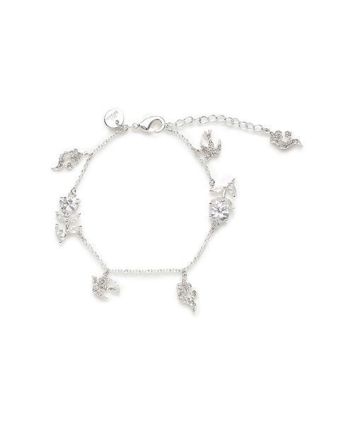 【フラワーとツバメがきらめくロマンティックブレスレット】 【Design/Styling】華奢なチェーンに、可憐なフラワーモチーフと幸福の象徴・ツバメをあしらった、ロマンティックなデザインのブレスレット。繊細にきらめくビジューが手元にさりげない華やかさを添え、女性らしさと上品さを引き立てます。カラーは肌なじみの良いゴールドと、清楚で洗練された印象のシルバーの2色展開。同シリーズのネックレスとのセット使いで、より統一感のあるスタイリングが叶います。※シリーズアイテム:LWGG255337 LilywingビジューヘアピンセットLWGA255342 LilywingビジューフラワーネックレスLWGA255343 LilywingビジューフラワーブレスレットLWGG255338 Lilywingビジューカチューシャ※照明の関係により、実際よりも色味が違って見える場合があります。またパソコン・スマートフォンなどの環境により、若干製品と画像のカラーが異なる場合もございます。予めご了承ください。商品の色味は、商品単品画像をご参照下さい。※商品画像はサンプルのため、色味やサイズ等の仕様に変更がある場合がございますので、予めご了承ください。