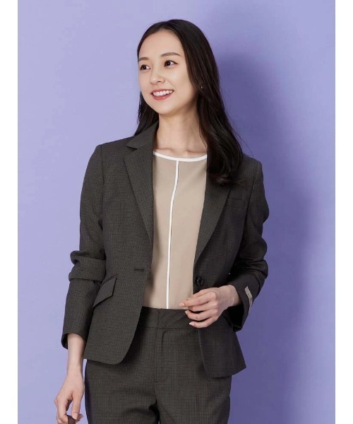 ストレッチの効いた素材で終日デスクワークの日でも快適な、DELEGANT(デレガント)シリーズのジャケット。ややシェイプされたウエストで、ワンピースやハイウエストボトムとも好バランスな着丈もこだわりのひとつ。ウォッシャブル仕様でお手入れも簡単、同シリーズのスカートとのセットアップもおすすめです。【DELEGANT/デレガント】フランス企画独特の色・柄が特徴的なストレッチ素材。ウールのような上品な風合いでビジネスシーンをお洒落に演出します。○おすすめポイント・大人可愛いチェック柄・ウールのような滑らかな風合い・タイトフィットなシルエットがスマート・フォーマルさがあり会議や営業に○・ストレッチ性があり動きやすい・ご自宅で洗えるウォッシャブル仕様伸縮性:あり透け感:なし裏地 :背抜き生地 :普通◆モデルサイズ:身長163cm 胸囲80cm ウエスト60cm ヒップ86cm◆着用サイズ:9号【ストレッチ】ストレッチ素材で動きやすく、快適な着心地を提供。アクティブなシーンでもストレスフリーで着用できます。【秋冬】秋冬シーズンにぴったりの暖かく、季節感を演出するアイテム。寒い日でも快適に過ごせます。【マシンウォッシャブル_PSFA】【スリム】スリムフィットなデザインで、スタイルアップ効果を狙えるアイテム。細身のシルエットが美しく、スマートな印象を与えます。【注意事項】※使用前に、タグ等に記載されている「取り扱い上の注意書き」、「洗濯表示」を必ずご確認ください。※商品画像は、光の当たり具合やパソコンなどの閲覧環境により、実際の色味と異なって見える場合がございます。 あらかじめご了承ください。【商品のお気に入り登録がおすすめです】お気に入り登録した商品は、最後の1点の通知、完売商品の再入荷、お得なお値下げ時にお知らせします。【Perfect Suit FActory/P.S.FAのお気に入り登録がおすすめです】P.S.FA新商品発売、再入荷や、セール情報など、お得な情報を受け取ることができます。