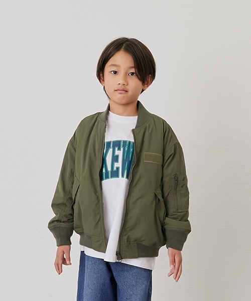 本格的なMA-1デザインと、冬らしい見た目のボア、両面で着られるリバーシブル仕様。程よくゆったりとしたサイジングで、インナーに厚手の裏毛を着ても着心地抜群。表地は程よくハリのあるナイロン素材を使用。フラップつきのポケットで物が落ちる心配もありません。内側は毛足の長いボアを使用しているので、保温性があり初秋から冬まで長く着用可能です。兄弟や姉妹のお揃いで着られて、一着で色々なコーディネートが楽しめる、お買い得なアイテムです! 内側にお名前を記入できるタグつき。≪重さ≫120cm/約422g【透け感】透けない【生地の厚さ】普通【伸縮性】なし【裏地】あり【ポケット】あり【アジャスター】なし
