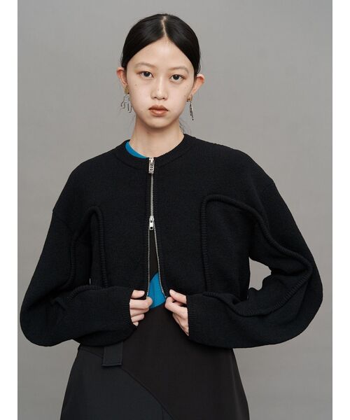 立体的なコードのパイピングがアクセントになったショートニットカーディガン。 厚みのあるダブルフェイス編地を使用し、表面には凹凸感のある立体的な表情を、裏面にはさらっとした軽やかさを持たせています。 しっかりとした質感ながらも通気性があり、オールシーズン着用できる素材感です。 ゆったりとした身頃と太めの袖が、 UN3D.らしいバランスの取れたシルエットを演出。 Wジップ仕様でシャツやワンピースなど、さまざまなインナーとのレイヤードが楽しめます。 立体的なラインと短めの着丈が、スタイリング全体を引き締める、存在感のある1枚です。 ----------------- 透け感:なし 生地の厚さ:厚手 裏地:なし 伸縮性:あり -----------------※画像の商品はサンプルです。実際の商品と仕様、加工などが若干異なる場合があります。 また、生産過程上の都合により洗濯表記や混率、サイズスペック等が多少変更になる可能性がございます。予めご了承ください。▼商品のお気に入り登録お気に入りアイテムの再入荷・在庫1点などの通知を受け取ることができます。▼ブランドのお気に入り登録新作アイテムの入荷や人気アイテムの再入荷、クーポンなどいち早くブランドのお得な情報を受け取ることができます。
