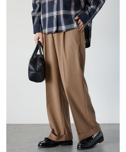 裾のロールアップしたデザインがワンポイントになるパンツ。ウエストにはタックを寄せており、立体感のあるシルエットを演出します。バックのウエストゴム仕様がラクな穿き心地を実現。どんなトップスにも合わせやすく、着回しの幅が広がるアイテムです。【その他採寸】F ウエスト:[後ゴム仕様]66cm ※商品画像は、撮影環境やお客様のご利用のPC・スマートフォンのモニター環境などにより実物と色味に差異がある場合がございます。★《お気に入り登録》でお得な情報をGET★① 商品ページ内のハートマークをクリック!② 以下通知が受け取れます!「再入荷」「ラスト1点」「特別セール」etc..\ブランド、ショップのお気に入りも是非!/