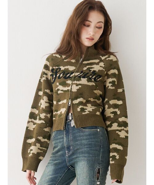 ■デザインショート丈×コンパクトシルエットが今っぽいニット。1色は存在感のあるカモフラージュ柄他のカラーはベーシックな無地展開で幅広いスタイリングにマッチします。ジップアップ仕様で着脱もスムーズ。コーデのアクセントとしても活躍します。■スタイリング程よく厚みのある編地でブルゾン感覚で羽織れる万能アイテム。デニムやスウェットなどカジュアルなアイテムとの相性が良いです。■ロゴの意味Sourire:ほほえみ--------------透け感:なし裏地:なし生地の厚み:やや厚め伸縮性:少しあり--------------