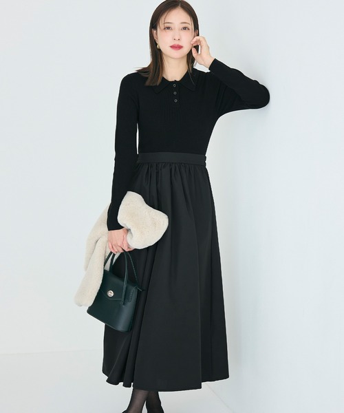 きちんと感と女性らしさを両立したポロニットドッキングワンピース■デザイン・シルエットポロニットトップスとスカート部分がドッキングされたワンピース。トップス部分は程よくフィットするポロ襟ニットで、きちんと感を演出。スカート部分はフレアラインで女性らしい動きが出るデザイン。一枚でコーディネートが完成する、忙しい日の味方アイテムです。■素材・柔らかく肌触りの良いニット素材を使用・トップスとスカート部分で異なる素材感をドッキング・適度な厚みで秋冬も快適に着用可能■コーディネートブーツやパンプスで上品に、スニーカーでカジュアルダウンも◎ジャケットやコートを羽織ればオフィススタイルにも対応。一枚で着映えするので、デイリーからお出かけまで幅広く活躍します。伸縮性:ニット部分のみあり透け感:ややあり裏地:なしポケット:あり生地感:柔らかいニット生地/さらりとしたポリエステル生地注意点:摩擦等により、毛羽立ちや毛玉が生じやすいため、連続着用はお避け下さい。Blackのみ、素材の特性上、色落ちしやすいのでご注意下さい。お洗濯方法によっては縮みや色あせの可能性あり。乾燥機等のご使用はお控え下さい。▼生地や素材の性質により4cm前後サイズ誤差が出る場合がございます。▼モデル着用写真は撮影環境により、多少実際のカラーと異なる場合がございます。▼色落ちの恐れがありますので、他のものと分けて洗って下さい。▼当商品は機械による生産の過程上、『生地を織る際の糸の継ぎ目』や多少の『ほつれ』、繊維の『混紡』、形やサイズに多少の『誤差』が生じる場合がございます。ワンピース ポロニット ロングワンピ 七五三 オフィス 体型カバー ドッキングワンピ フレアワンピ きれいめ 着回し ニットワンピ 体型カバー 25aw コカ COCA coca COCA coca