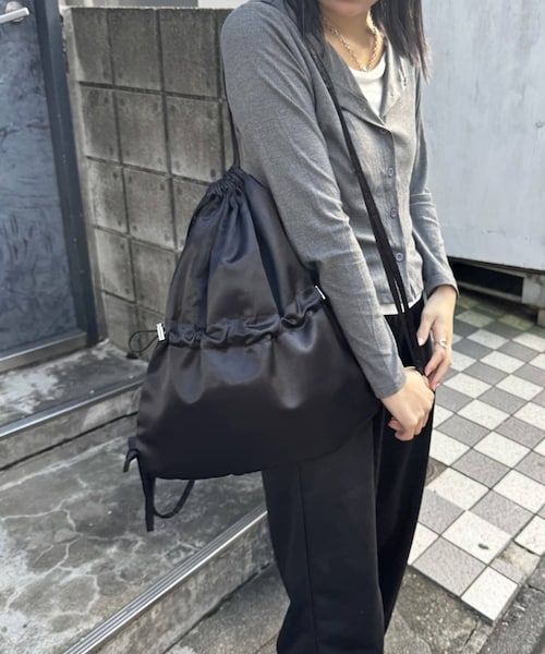 お出かけにおすすめのナップサックシンプルで使いやすいデザインのナップサック。お出かけのマストアイテムがしっかり入るので機能性も抜群♪フロント部分のギャザーは調節が可能でお好みのフォルムに変えられます◎普段使いはもちろんお出かけにもぴったりです[Point]〇カジュアルコーデのワンポイントになるバッグ〇普段のコーデに取り入れるだけでトレンド感がアップ