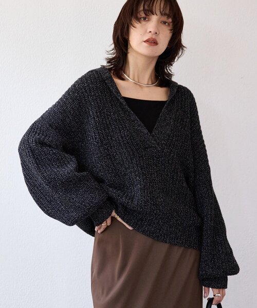 襟のデザインと抜け感あるスキッパーネックが魅力●デザイン・ミックス感がかわいいニットらしい魅力のある糸を使用。手洗い可能なのも嬉しいポイント。・セーラーカラー風の衿が印象的なスキッパーネック。 深いカッティングのスキッパーなので幼くならず、抜け感のある今っぽい着こなしが叶います。・ふっくらとした編地、まろやかなフォルムもフェミニンなムードを演出。・ボリューム感が素敵なスリーブで程よい甘さもプラス。・着るだけで華やぐピンクはホリディシーズンにピッタリな推しカラー。・ウール/コットンで春先まで使えるのも◎●素材毛 53% 綿 47%洗濯方法:手洗い可透け感:なし裏地:なし伸縮性:あり生地の厚さ:-光沢:なし--------------------------------------------------------------------------------【お買い物をもっと便利に楽しく♪】『♡』をクリックでお気に入り登録✓「商品のお気に入り登録」で・・・ラスト1点や再入荷の通知が届きます。登録して頂いた商品だけが対象となる、あなただけのタイムセールが開催されることも!✓「ブランドのお気に入り登録」で・・・新商品や再入荷など、いち早くブランドのお得な情報を受け取ることができますので、ご登録をおすすめします!--------------------------------------------------------------------------------【注意点】※画像の商品は光の照射や角度、お使いのモニター環境により、 実物と色味が異なる場合がございます。※入荷状況により、お届け予定が前後する場合があります。※お客様への発送が店頭販売より遅れる場合もあります。※追加生産商品は、一部の店舗、通販で販売中の場合がございます。 予めご了承下さい。----------------------------------------------------------------------