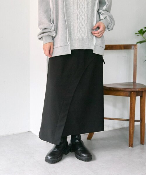さり気なく個性を引き立てる。切り替えデザインが映えるAラインスカート■デザイン・着心地・曲線を描く切り替えラインと、サイドに付いたフラップポケットが印象的。・オールブラックのシンプルなカラーで、派手すぎず上品に個性をアピール。・ウエストは総ゴム仕様&ドローストリング付きで、快適なフィット感を調整可能。・厚すぎない生地で、ロングシーズン活躍。・バックスリット入りで、歩きやすさも抜群。・右ヒップにもポケットを備え、実用性にも配慮。■サイズ追記・スカート丈:~88cm・バックスリット:17cm《スタッフ着用コメント》(身長160㎝/普段着用サイズ:Mサイズ/骨格ウェーブ)くるぶしより指1,2本ほど上くらいの丈感。ウエストが総ゴムであることで着脱しやすいです。厚手過ぎない素材を使用しているので着心地は軽やかですが裏地付きなのである程度の保温性もあると思います。■スタイリングコンパクトなシルエットのニットやカットソーと合わせてシンプルにまとめるのも良いですし模様や絵柄のあるデザインスウェットやニットと合わせるのも◎ワンカラーデザインなのでさまざまなトップスと相性良く合わせていただけます。■素材・お手入れ方法素材:ポリエステル95%・ポリウレタン5%洗濯表示:洗濯機による弱洗い可・・・・・・・・・・・・・・・・・・・・・・透け感:なし裏地:あり伸縮性:なし光沢感:なし生地の厚さ:普通・・・・・・・・・・・・・・・・・・・・・・【SUM1 STYLE(スミ スタイル)】とは…ear PAPILLONNERのアパレル、グッズを展開するインブランド。 コンセプト▼メンズライクの中より溢れ出る女性らしさ動きのある大人の新しいニューカジュアル自らファッションを創り出す人々に提案SUM:統合 1枚で決まる洗練されたスタイルSUM:総和 生地と生地、柄と柄、無限の組み合わせの答えSUM:和 人と人、洋服 SUM:要点 デザインを明確に伝えるインパクト《お気に入り登録》でお得な情報がいっぱい! ・「商品のお気に入り登録」で入荷情報や、ラストの通知、セール・クーポンの通知などを受け取ることができます! ・「ブランドのお気に入り登録」で新商品や再入荷など、お得な情報を受け取ることができます!
