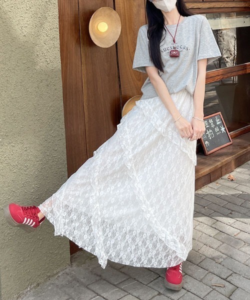 着るだけでオシャレの完成度をあげる、トレンドのレーススカート 繊細な花柄の総レースとアシンメトリーに施されたレースデザインが 上品かつ高級感たっぷりなロング丈スカートです。 動くとふわっと広がるシルエットが軽やかで コーデに立体感と女性らしさを感じさせてくれます♪ ウエストは総ゴム仕様で気になる腰回りを自然にカバーできるのも嬉しいポイント◎ ロゴTと合わせてカジュアルにも、コンパクトなチビTと合わせてフェミニンにも◎ デニムパンツと合わせてトレンド感あるレイヤードスタイルも♡ 合わせ方次第でロングシーズン着用いただけます♪ ‥‥‥‥‥‥‥‥‥‥‥‥‥‥‥‥‥ 透け感:やや有 伸縮性:有インナー:有 厚さ:普通 サイズ感:普通 ‥‥‥‥‥‥‥‥‥‥‥‥‥‥‥‥‥ ●サンプル品を使用している事もあり、サイズ感など多少異なる場合もございます。 ●パソコンのモニター、撮影の光量などにより画像と実物の色味が異なって見える場合がございます。 ●入荷時期・追加生産により画像・詳細と多少異なる場合がございます。 ■商品によって生地の他繊維の混紡、縫製の多少のほつれなどがある場合がございます。