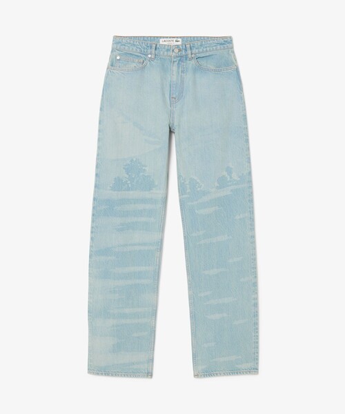シャンタコの風景を描いたグラフィカルデザインが映えるデニムジーンズ・環境保全に配慮したオーガニックコットンデニム素材・ルネ・ラコステゆかりのバスク地方シャンタコの風景をレーザープリントで全面に・ベーシックな5ポケットを備えたストレートフィットシルエット・背面ウエストにレザーパッチ・バックポケットにボディと同色のワニロゴパッチを配置・Straight Fit・品番:CH9211-10とのセットアップ着用可能です。