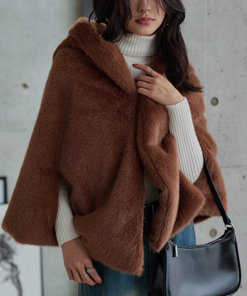 リッチな雰囲気ただようファーケープマント。肩にかけたり、手を通して羽織るだけで上品で洗練されたエレガントさな表情に。 ケープ型と頭までしっかり温めてくれるフーディー型の2デザインからお選びいただけます◎ 【素材・サイズ感】 ボリューミーなフワフワ感が見た目にも可愛くあったかいエコファー素材。 軽くて柔らかな肌触りが心地よく一気に秋冬ムードを演出。 カーデのように気軽に羽織れ、ライトアウター代わりにも使える一着です。 【STAFFコメント】 ふわふわのフェイクファーが大人可愛いケープコート。 ケープタイプとフードタイプの選べる2type◎ お出かけ時の防寒対策としてはもちろん、おうち時間にもおすすめです。 羽織り感覚で使える華やかな軽アウターです。 《KOBE LETTUCE ー神戸レタスー》 プチプラレディースファッションからコスメまで、トレンドアイテムを豊富に取り揃えております。 毎シーズン発売されるインフルエンサーとのコラボ商品はSNSでも話題に。