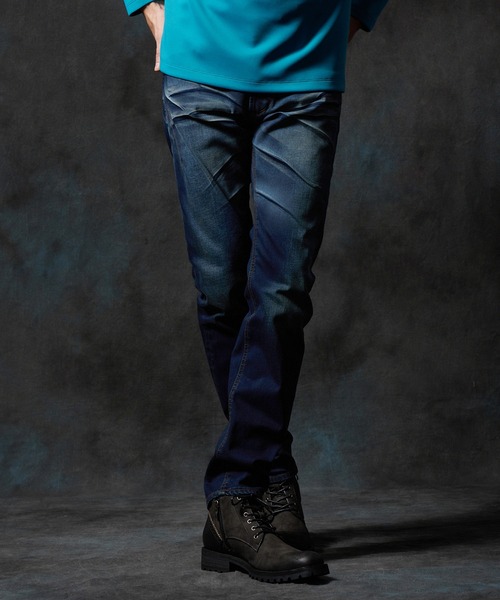 ■デザインスキニーシルエットのシンプルな5ポケットデニム。脇のダーツでシャープな印象に。ウエストベルトの地の目を変える事で、ベルト部分も伸縮する様にしております。膝裏にダーツ切り替えを作る事で、立体的なシルエットに仕上げました。通常の削り加工に加えて前股のひげは立体的なひげ、顔料を吹き付ける事で他には無い陰影感のデニムに仕上げています。■サイズ細身のスリムスキニーシルエット■素材生地には10ozのストレッチデニムに裏起毛をかけた素材を使用。裏起毛による柔らかな風合いと温かさ、高い伸縮性がありながら膝抜けせず、綺麗なシルエットを保つしっかりとしたハリもある素材です。サイズ設定は細身ですが、ストレッチがあるのでストレスフリーに着用頂けます。伸縮性:あり生地の厚さ:やや厚手裏地:なし加工:製品ユーズド加工■注意点デニムは最終加工で移染防止剤にて色落ちを抑える様にしていますが、インディゴ染色素材なので絶対色落ちしない事はありません。段々色あせてくるのが染色上、デニムの特性、味になります。※画像の商品はサンプルです。 実際の商品とは仕様・加工・サイズ・素材が若干異なる場合がございます。※掲載画像の商品の色味は、撮影場所や光の当たり具合などにより色味が異なって見える場合がございます。 商品の色味は、生地アップの画像をご参照ください。 また、お客様のお使いのPC・スマートフォン等のモニター環境などにより色味が異なって見える場合がございます。 予めご了承の上ご注文ください。※着用モデル身長182cm B89cm W75cm H90cm 着用サイズ48