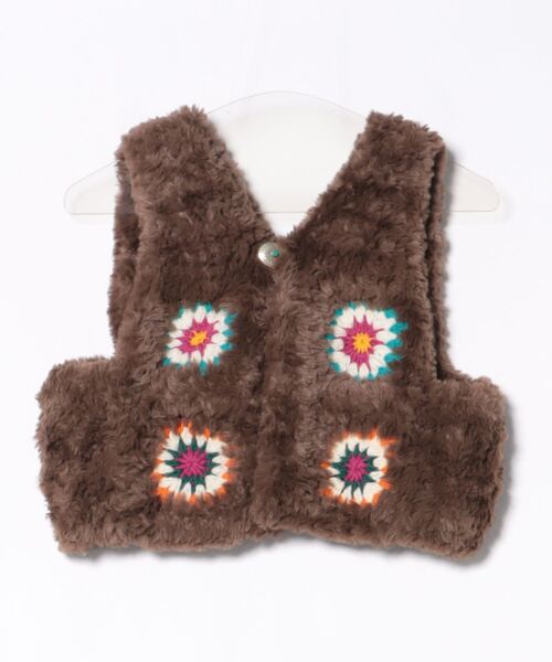 ネパールの職人さんがひとつひとつ手編みで仕上げたニットベスト。 ふわふわなフェイクファーヤーンが柔らかく暖かな風合い。 カラフルなクロシェ編みとコンチョボタンがポイント。 ショート丈でレイヤードコーデのアクセントにおすすめです。 ※こちらの商品は1点1点職人による手作り・ハンドメイドとなります。その為、形や色合いなど若干異なる場合がございます。あらかじめご了承ください。 Amina Collection Co.,LTD.