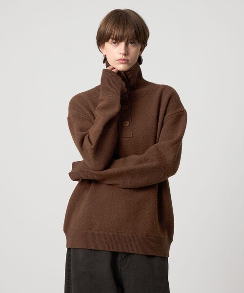 1枚で着ても様になるハイネックのプルオーバーニット■デザイン襟元を開けるアレンジも楽しめるハイネックプルオーバーニット。エルボーパッチやサムホールを施した長めの袖丈が特徴の1枚です。■素材毛の素材感を残した圧縮ニットを使用。■コーディネートインナーにハイネックをあわせてフロントボタンを開けてレイヤードを楽しんだり、ボタンを留めてビッグシルエットアウターのインナーとして着用するのもおすすめです。============================裏地:なし透け感:なし伸縮:ややあり光沢感:なしケア方法:ドライクリーニング============================【注意事項】※商品に「取り扱い上の注意書き」、「洗濯表示」がございます場合は、使用前に必ずご確認ください。※商品画像は、光の当たり具合やパソコンなどの閲覧環境により、実際の色味と異なって見える場合がございます。あらかじめご了承ください。※商品の色味の目安は、商品単体の画像をご参照ください。※画像の商品はサンプルです。実際の商品と色味、仕様、加工、サイズ、素材等が若干異なる場合がございます。店舗へお問い合わせの際は、全国のASTRAET各店舗まで下記の品名/品番をお申し付けください。品名:AS W 7G HI/STD PO 品番:54131050245