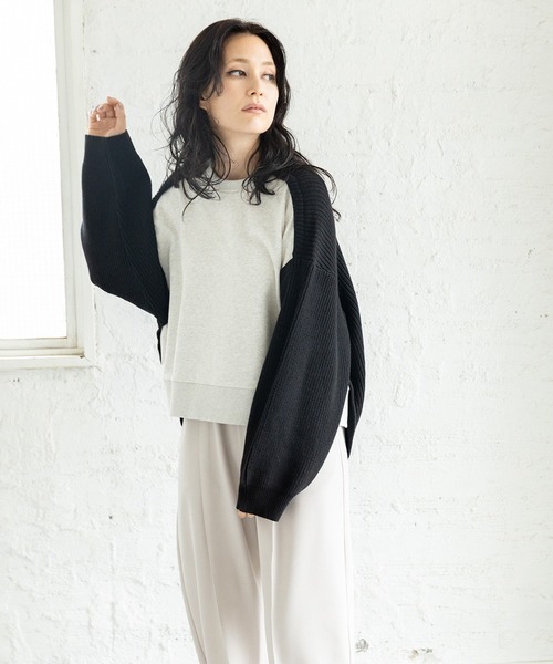Autumn Winter collectionカジュアルなラグラン風のスリーブを、ニットで作った大人ストリートなプルオーバー。暖かみのある編地から女性らしさも感じる1枚。前後で着られる2WAY仕様。===========================透け感: なし/ニット: なし伸縮性: あり/ニット: あり光沢感: なし/ニット: なし裏地: なし/ニット: なし素材について: 柔らかなミニ裏毛 / 肌触りは柔らかな、ざっくりとしたミドルゲージ===========================【素材】 コットン60%,アクリル40% 別地/ポリエステル53%,コットン47%,リブ/ポリエステル59%,コットン37%,ポリウレタン3%,レーヨン1%【仕様】 2WAY仕様【洗濯表示】 手洗い可■商品のお気に入り登録クーポンやタイムセール、再入荷通知やラスト1点などお得な情報を受け取ることができます。ご登録をお忘れなく◎