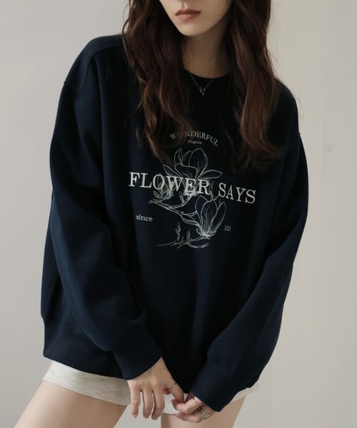 ややゆったりシルエットで、抜け感をプラス。■デザインフロントにあしらったフラワー刺繍とロゴが目を引く、カジュアルながらもフェミニンなスウェットトップス。ややゆったりとしたシルエットで、抜け感のある今っぽいバランスに。裏起毛なしの軽やかな素材感で、春・秋は1枚で、冬はインナーとしても活躍。甘すぎず、でもちゃんと可愛い。そんな絶妙なバランスが魅力の1枚です。■素材コットン×ポリエステルの混紡素材で、軽くて柔らかく、デイリーに使いやすい。裏起毛なしでロングシーズン対応。洗濯後も型崩れしにくく、お手入れも簡単です。■スタイリング- デニムやカーゴパンツと合わせて、カジュアルに。- ミニスカートやショートパンツにレイヤードして、甘辛ミックスも◎。- シャツやタートルをインして、レイヤードで遊ぶのもおすすめ。- キャップやスニーカーで、ストリート感をプラスしても可愛い。-----------------------------------------------【お買い物をよりお楽しみいただく為に】▼お気に入り登録サイズ・カラーを指定して、♡マークをクリック![セール通知・ラスト1点の通知・完売アイテムの再入荷通知]を受け取ることができます。▼ブランドのお気に入り登録新商品や再入荷、タイムセールやクーポン等いち早くブランドのお得な情報を受け取ることができます。-----------------------------------------------※取り扱い上のご注意染色の特性上、発汗や摩擦により色落ちしたり他のものに色移りすることがありますのでご注意ください。韓国ファッション オフィスカジュアルガーリー大人カジュアル韓国ファッション秋服冬服