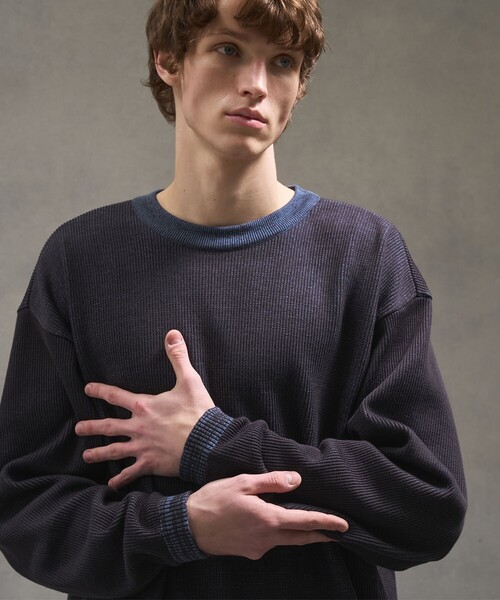 ◆拘り: 自宅で洗えてしまうウォッシャブルニット。ワイドパンツにも合わせやすい今の気分なシルエットが魅力的です。ケアはカットソーのようにラフに扱えるのにニットらしいアゼ編みの凹凸が印象的。ニットの風合いとカットソーの落差を両立させました。スウェット感覚で着れる1枚でもアウターのインナーにも着れるニットです。日本製の上質なニットを手に取りやすい価格で実現させたこのAWおすすめの一着です。◆素材:コットンとポリエステルの混紡素材で、サイロスパンという毛羽立ちが少なく、クリアな外観を持つ目面が綺麗に仕上がる紡績方法を採用しております。発色が良く耐久性もある新素材で、ニット特有のチクチク感もなく、なめらかで肌触りの良い表面感に仕上げています。そして、自宅の洗濯機で洗える取り扱いのしやすいアイテムです。◆サイズ目安サイズ1: 身長 ~171cmサイズ2: 身長 172~177cm サイズ3: 身長 178cm~※こちらは標準体型を基にしています。