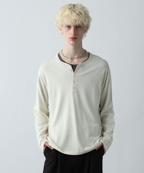 ーーー上品なヘンリーネックがポイントになるプルオーバーーーーDESIGNヘンリーネック仕様でボタンの開閉で抜け感を調整でき、クルーネックTシャツとは一味違う、こなれた印象を演出します。小ぶりなボタンが派手さを抑え、より上品さを際立たせます。コンパクトなサイズ感でトレンドライクなシルエットを実現。コンパクトながら落ち感のある生地な為、ストレスフリーに着れます。MATERIAL落ち感のある滑らかな生地で心地の良い、極上の着心地を提供。程よいストレッチ性があり、ストレスフリーに着用でき、シワになりにくいです。