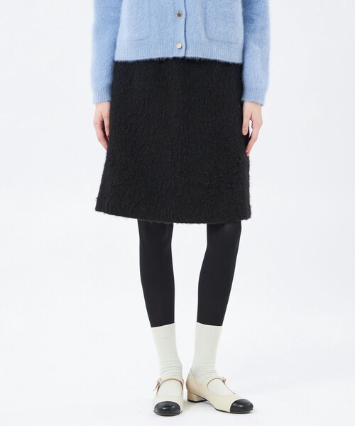 意匠感のあるへアリーな素材を活かしたミニマルなデザインのショートスカート。シンプルでありながらウールシャギーの上質な素材感で、一枚で華やかな印象に。コーディネートの主役になるスカートです。【素材】ヨコ糸にモヘヤループ糸を使用した、ループカットシャギーの素材です。シャギー仕上げにすることにより、モヘヤ独特の光沢感を出しているのが特徴です。軽さがある素材なので、コートのみでなく、スカートにも最適の素材です。別注の縮絨の加工を入れ、ふくらみ感と目の詰まった表情を作っています。おすすめ着用期間:秋/冬※この商品はサンプルでの撮影を行っています。実際の商品とイメージ、仕様が異なる場合がございます。