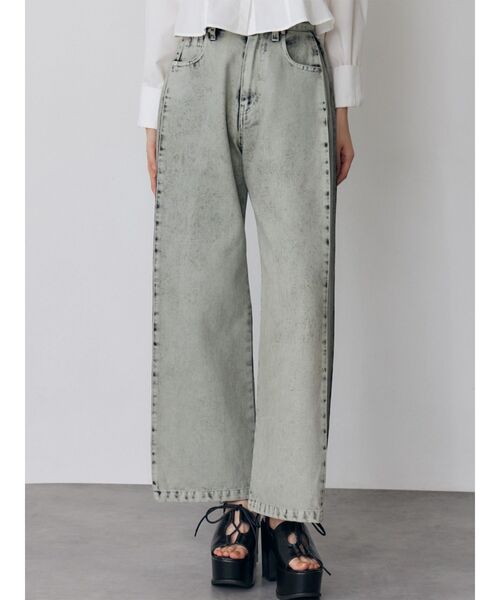 加工感とカラーが今季らしいデニムパンツ裾が絞れる2WAY仕様■アイテムヴィンテージ感漂うウォッシュ加工が魅力のデニムパンツ。脇に入ったタックが表情を出してくれます。裾の釦で裾幅を調節できるので、ワイドシルエットとコクーンシルエットの2パターンのシルエットが楽しめます。ミントグリーンとピンクはデニムをスーパーブリーチしてミントグリーンのオーバーダイを施した、こだわった加工となっております。程よくハイウエストで、腰回りはすっきり、裾にかけてゆったり広がるワイドシルエットに。ラインを拾わないので体型カバーも叶う万能パンツです。程よい厚みのあるデニムとカツラギ素材になってます。ソフトな着心地ながらもハリ感があり、長時間の着用でも型崩れしにくいのが特徴です。同素材のデニムジャケットとのセットアップスタイルで統一感のある着こなしに。コンパクトトップスやショート丈ニットと合わせたバランスコーデがおすすめです。▼同素材のアイテムはこちらから検索↓▼012610105301 2wayデニムジャケット012612505201 サイドオープンデニムスカート--------------------------------------------裏地:なし 生地の厚さ:普通ポケット:あり サイズ感:普通--------------------------------------------【知って得する便利機能◎ 】■商品のお気に入り登録再入荷時、ラスト1点の時にお知らせします。■ブランドのお気に入り登録新商品やお得な情報など、いち早くお得な情報をゲット!ぜひご活用ください。※着用画像はフラッシュの加減で実際の製品と色味等が異なる場合がございますので、生地のズームアップ画像をご確認ください。※ご利用の端末画面の設定により実際の商品と色味が異なる場合がございます。