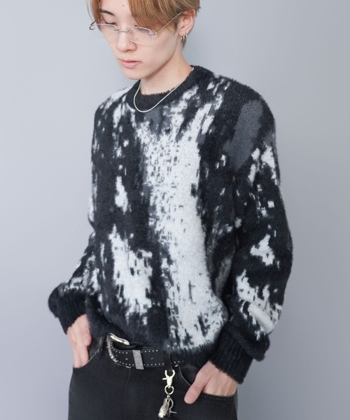 【DESIGN / デザイン】ふわっとしたシャギー素材が目を惹く短丈ニット。今季らしいショート丈シルエットで、ワイドパンツやカーゴパンツなどボリュームボトムとのバランスが抜群。柄は“アート”“ヒョウ”“カモフラ”の3タイプ展開。どの柄もコーデの主役になるインパクトデザインで、トレンドのストリート・グランジスタイルにもマッチします。ユニセックスで着用できる、今季おすすめのデザインニットです。【FABRIC / 素材】柔らかく起毛感のあるシャギー糸を使用し、肌あたりが優しくチクチクしにくい仕上がり。軽さとあたたかさを兼ね備えた素材感で、インナーにもアウターにも活躍してくれます。ふんわりとした風合いがシーズンムードを高める一枚です。※掲載画像(商品、モデル着用とも)につきまして、撮影環境やお客様の閲覧されますパソコンや携帯電話キャリアによって、実際の商品とは多少異なった色に見える場合があります。また表示のサイズ感も実物とは若干異なる場合もございますので、予めご了承ください。※タグ・バーコードのついたシールには、サイトのご案内と異なるカラー名が記載されていることもございます。ご了承ください。- - - - - - - - - - - - - - - - - - - - - - - - - - - -【「お気に入り登録」でお得な情報が届きます】・「商品のお気に入り登録」で再入荷通知、ラスト1点の通知、セール通知などを受け取ることができます。・「ブランドのお気に入り登録」で新商品、人気アイテムの再入荷など、お得な情報を受け取ることができます。- - - - - - - - - - - - - - - - - - - - - - - - - - - -
