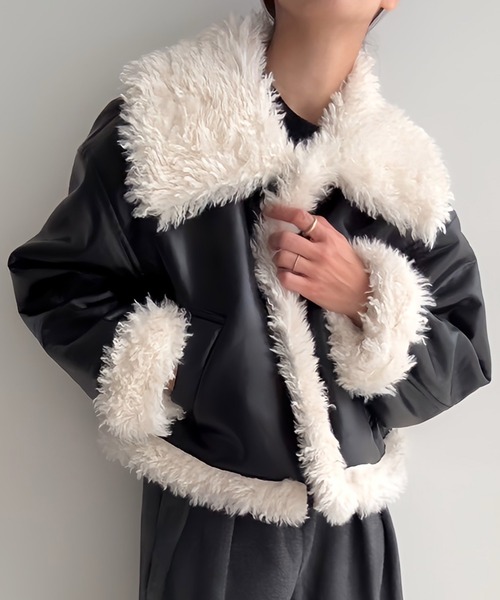 【JUNOAH / ジュノア】 秋冬のカジュアルコーデに欠かせない! くるくるファーが愛らしいレザージャケットが登場♡ ■detailくるくるとしたプードルファーが可愛らしいレザージャケット。 大きめの襟デザインで顔周りが華やかになり、 重厚感がありながらもハードになり過ぎず、 裏地はボア素材を使用しているので暖かく過ごしていただけます。 クロップド丈でデイリーに着回ししやすく、スタイルアップが叶うのもポイント。 ■fabric 程よいツヤ感がある合成皮革に、毛足のあるファー素材を合わせました。 ………………… 透け感:なし 厚さ:やや厚手 伸縮性:なし 裏地:あり シワ:なりにくい 推奨シーズン:10月~3月 ※関東の平均気温を目安に推奨シーズンを記載しております。 ………………… ※詳しいお手入れ方法は商品タグをご参照ください。 【※必ずご確認の上、ご検討ください※】 ・通販の特性上、到着時には畳みシワが必ずございますのでご了承ください。 ・掲載している画像はできる限り実際の商品に近づけておりますが、モニター環境や照明等により、実際の色味と異なる場合がございます。 ・商品画像は撮影時の光や角度により、実物の色味と異なって見える場合がございます。 ・撮影はサンプル品を使用しており、表示のサイズ感も実物とは若干異なる場合がございますので、予めご了承ください。 ・生産時期により色・素材・サイズ感など多少異なる場合がございます。予めご了承ください。 ・濃色製品は、摩擦(特に湿った状態での摩擦)や、汗・雨などで濡れた際に他の衣料やバッグなどに色移りする場合がございます。淡色・白物との組み合わせや重ね着の際はご注意ください。 ・洗濯の際は、他の衣類と分けて単独で洗ってください。淡色・白物と一緒に洗うと色移りする恐れがあります。 ・洗濯の際はネット使用をおすすめいたします。漂白剤のご使用はお避けください。 ・タンブラー乾燥(乾燥機の使用)は、生地の縮みや型崩れ、風合いの変化の原因となるためお避けください。 ・素材の特性上、洗濯や着用により多少の縮み・ゆがみが生じる場合がございます。 ・天然素材(綿・麻・ウールなど)を使用している商品は、繊維の特性上ネップ(糸の節)や多少の織りムラが見られる場合がございますが、素材の風合いとしてお楽しみください。 ・ダメージ加工やウォッシュ加工が施されている商品は、1点ごとに風合いや色の出方が異なります。製品の特性としてご理解ください。 ・商品生地の特性により±1-2cm(ニット製品は±1-3cm)程度の誤差が生じる場合がございます。 ・着用感には個人差がございます。サイズ表記は目安としてご参考ください。 ・プリント・刺繍・装飾のある商品は、摩擦や洗濯により多少のはがれ・毛羽立ちが生じる場合がございます。お取り扱いにはご注意ください。 ・直射日光や蛍光灯の光に長時間当たると、変色・退色する場合がございます。保管の際は光の当たらない場所で保管してください。 ※返品・交換規定は当サイトのヘルプをご参照ください。 ★お買いものをよりお楽しみいただく為に!★ ▼商品のお気に入り登録 お気に入りアイテムの完売カラーの再入荷通知や、ラスト1点の通知、 セールの通知も受け取ることができます。 ▼ブランドのお気に入り登録 新商品や再入荷など、クーポン配布などのお得な情報を受け取ることができます。