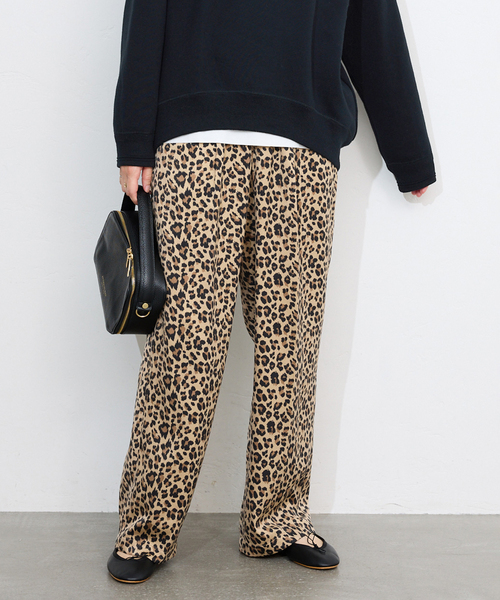 洗濯機使用可能/ウエストゴム【2025AW】SLOBE IENAPOINT存在感のあるレオパード柄がスタイリングの主役になるイージーパンツ。【素材の特徴】シーズンレスで着用いただける落ち感のある素材を採用。【デザイン】リラックス感あるワイドシルエットですが太すぎず、大人も着やすいサイズ感に仕上げました。ウエストはゴム仕様でイージーな履き心地も魅力です。【コーディネート】ゆったりしたスウェットやニットと合わせてラフに着こなしていただくのがおススメです。**********************透け感:なし裏地:あり伸縮性:なし光沢感:なし生地の厚さ:普通**********************《スタッフ名:Sally》年齢:30代後半/身長:162cm/体型:細身/普段サイズ:M/着用サイズ:38サイズ感:全体的にラインをひろわないゆとりのあるシルエット。フラットシューズでひきずらなくらいのちょうど良いフルレングス丈でした。素材感: 落ち感のあるサラッとした素材。着心地:軽く、リラックスした履き心地。真冬はタイツと合わせても履けそうです。**********************※取り扱いについては、商品についている品質表示でご確認ください。こちらの商品は、SLOBE IENAでの取り扱いになります。直接店舗へお問い合わせの際はSLOBE IENA店舗へお願い致します。※照明の関係により、実際よりも色味が違って見える場合があります。またパソコン・スマートフォンなどの環境により、若干製品と画像のカラーが異なる場合もございます。予めご了承ください。※商品の色味は、商品アップ画像をご参照ください。着用スタッフ身長:162cm 着用サイズ:38詳細着用スタッフ身長:163cm 着用サイズ:38本体:洗濯機洗い(弱)